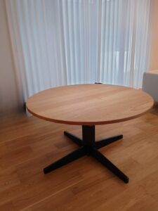 直径130cm・高さ72cm の丸テーブル。