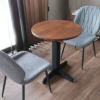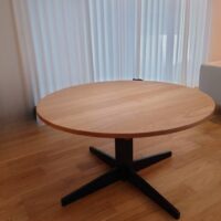 直径60cmのコンパクトサイズの丸テーブルを アルダー材 × ブラック脚の 2トーンカラー でお作りしました …