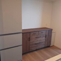 アルダー材を使った 150cmサイズのキッチン収納を納品しました。 やさしい木目と落ち着いた色味で キッチン空 …
